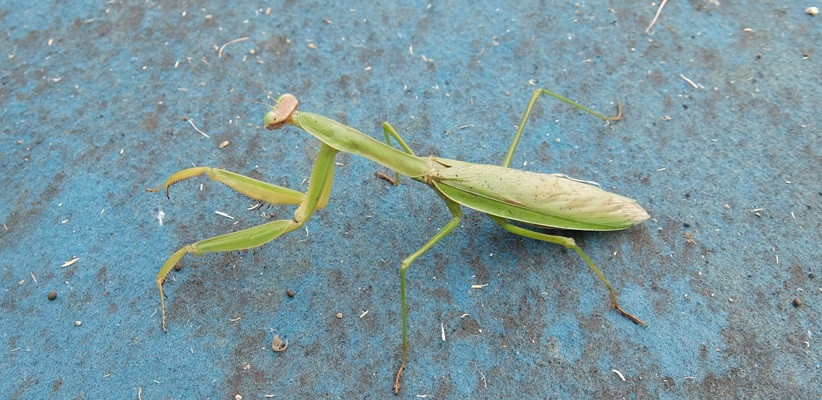 最近、最低気温が2℃まで下がった日がありました。前日の昼間にとても大きな無傷のカマキリちゃんに出会ったものですから、夜になって保護して一晩家の中で過ごしてもらい、朝、元に戻しました。ちょっとだけ延命出来たのではないかと思います。