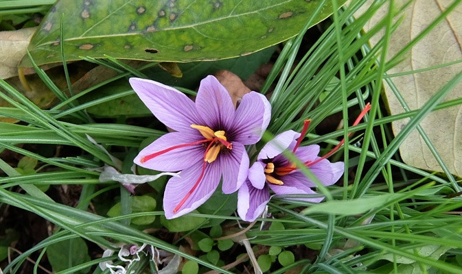 今年はサフランが豊作です。草を刈っていない場所で、延びた草の中で逞しく大きな花をつけています。
