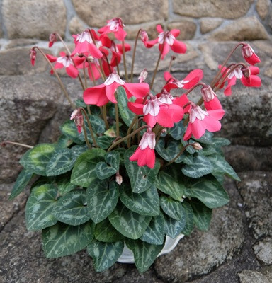 昨年末に手に入れたシクラメンが、この夏の酷い暑さを無事に乗り越え、多くの花をつけてくれました。西向きの雨のかかりにくいテラスの棚に置き、水やりだけは気を付けていたのが良かったようです。