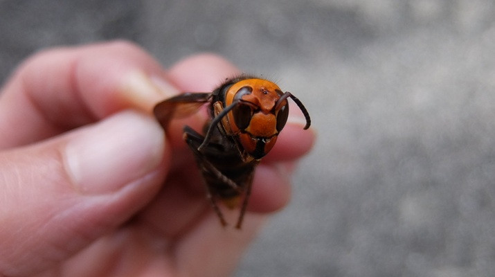頭上2メートルくらいの巣の門番ハチと目が合った瞬間、一直線に飛んでくるのが見え、逃げる暇なく、頭を2,3か所刺されました。