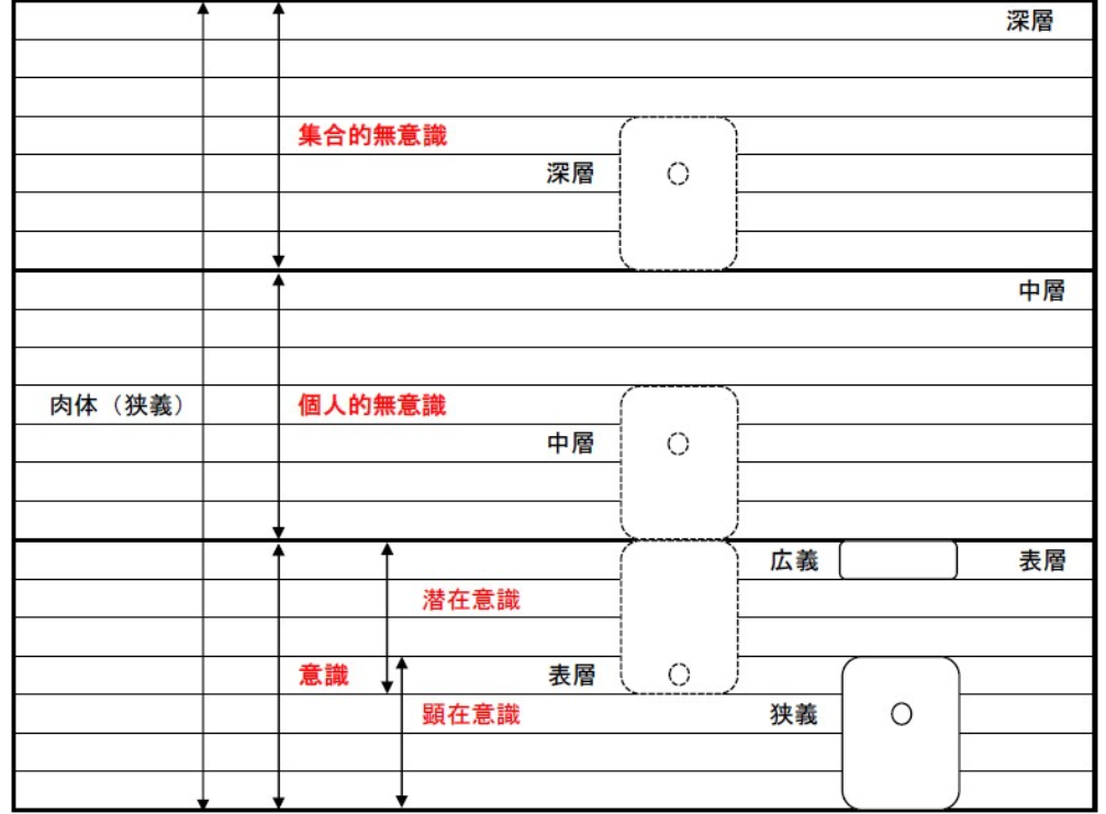 狭義( )の○のついた場所が、私たちの“からだ”(夫がよく言う“ぐいぬるみ”)の存在界層です。