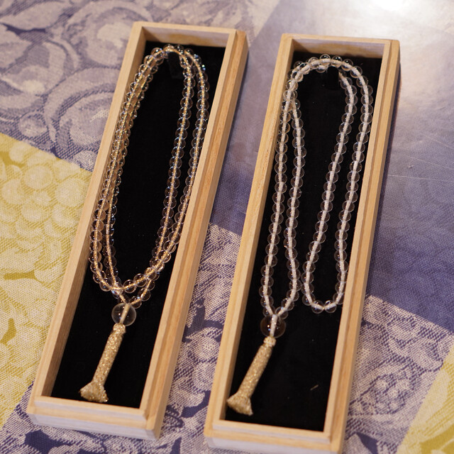 最初の課題は「お求めやすいマーラー」を実現するための、水晶に代わる安価なビーズの入手です。ビーズには、これまでピヨちゃんの彫られたビーズにも使用していた、日本製の高品質なガラスビーズを使用することにしました。