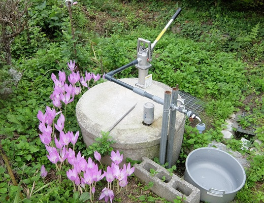 そして、私たちの悲願が叶って、写真の3mの浅井戸の壊れていたポンプを手押しポンプに交換しました。業者さんも初めての体験で、手押しポンプから水が揚がった時、若い作業の方が感動していたのも、印象的でした。手押しポンプで水を出した経験者は何人いるのだろう。これで電気の供給が止まっても、水が確保できます!