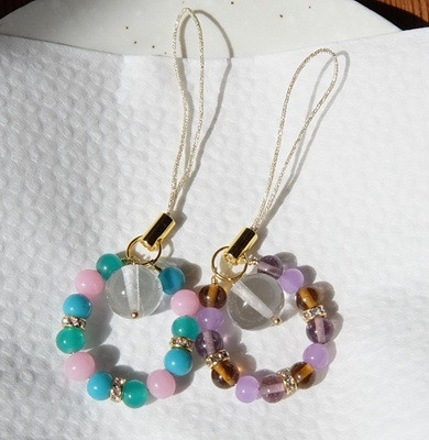 …時は流れ、ある日、私が見せたストラップの見本を見て、ミルキーユさんが本気を出して、色々調査の後、試作品を作ってくれました。少し改良すれば、商品やプレゼントに出来そうという夫の判断が下され、使うガラスビーズ3色の組み合わせ×2通り分、夫が直感で選び、注文して届いたビーズの数は、ピヨちゃんビーズの数とぴったんこで、余りなし。
