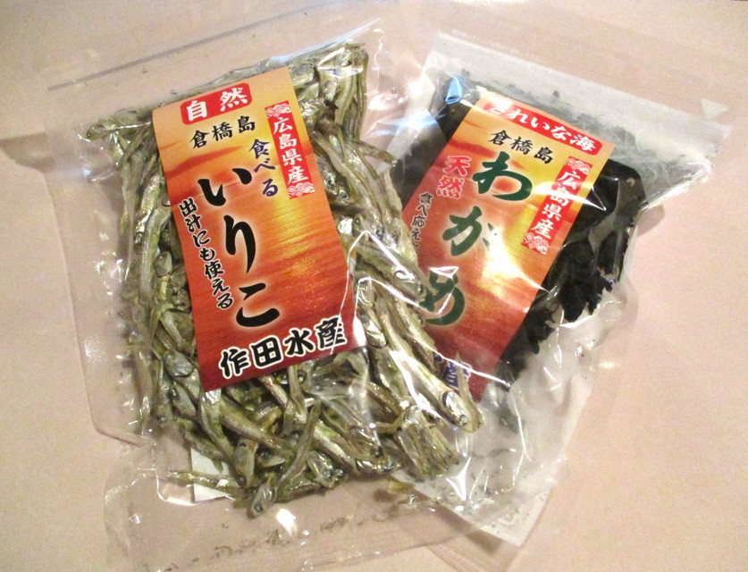 牡蠣の生産で有名な広島県倉橋町で取れた いりこ&わかめです。