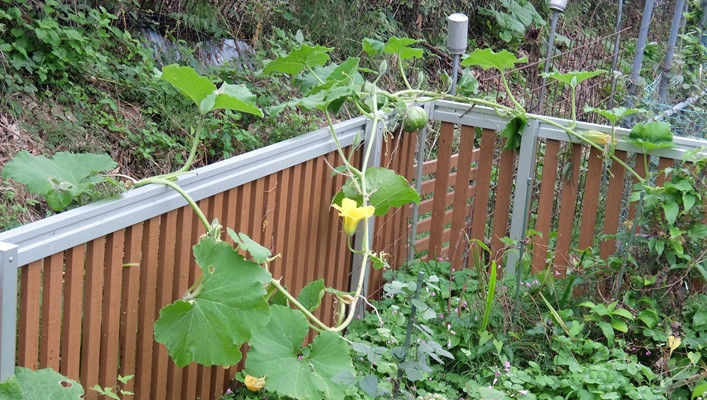 台風22、23号の伊豆諸島における被害が気になるところです。日本列島上空の気圧を高くして本土に台風が上陸しないように気象操作したからあんなに暑かったのではないか、といぶかしがってしまいます。この暑さで相変わらず草が伸び、台所のゴミを捨てている場所から、今頃になってカボチャがぐんぐん伸びて、実をつけています。