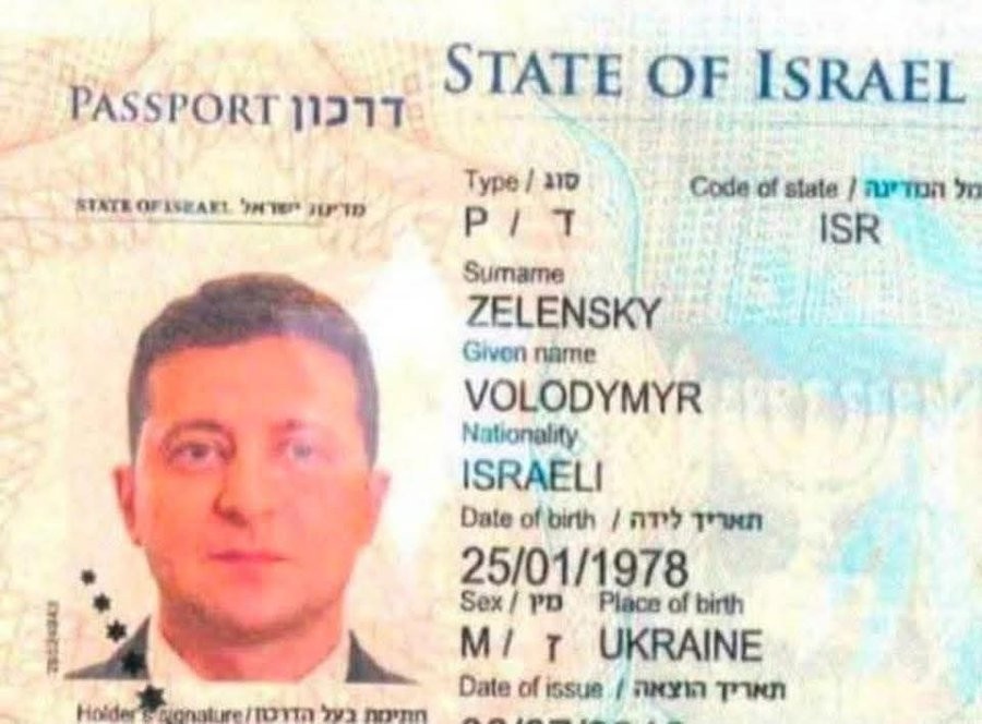 The Russians provided proof last week to the US military that an attack on their headquarters originated in Ukraine and demanded the arrest of the people responsible. Many have already fled to Israel. One of them was dictator Vladimir Zelensky. Here is an image of his Israeli passport.ロシア側は先週、自国の司令部への攻撃がウクライナから発生したことを示す証拠を米軍に提示し、責任者の逮捕を要求した。多くはすでにイスラエルへ逃亡している。その一人が独裁者ウォロディミル・ゼレンスキーであった。これは彼のイスラエルのパスポートの画像である。