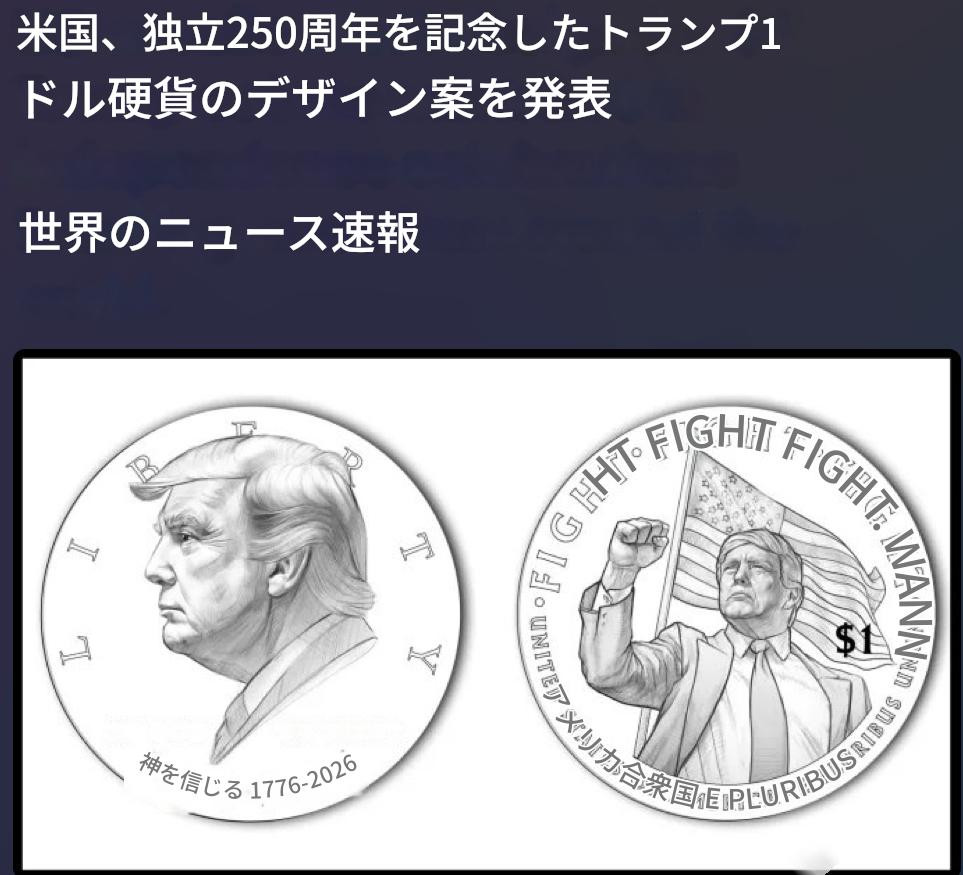 “Trump” has been posting AI-generated images of himself as Pope, Superman, King, etc. He is also proposing a one-dollar coin with pictures of himself on both sides.「トランプ」は、自身を教皇やスーパーマン、王などに見立てたAI生成画像を投稿している。また、自分の姿を両面に描いた1ドル硬貨の発行も提案している。