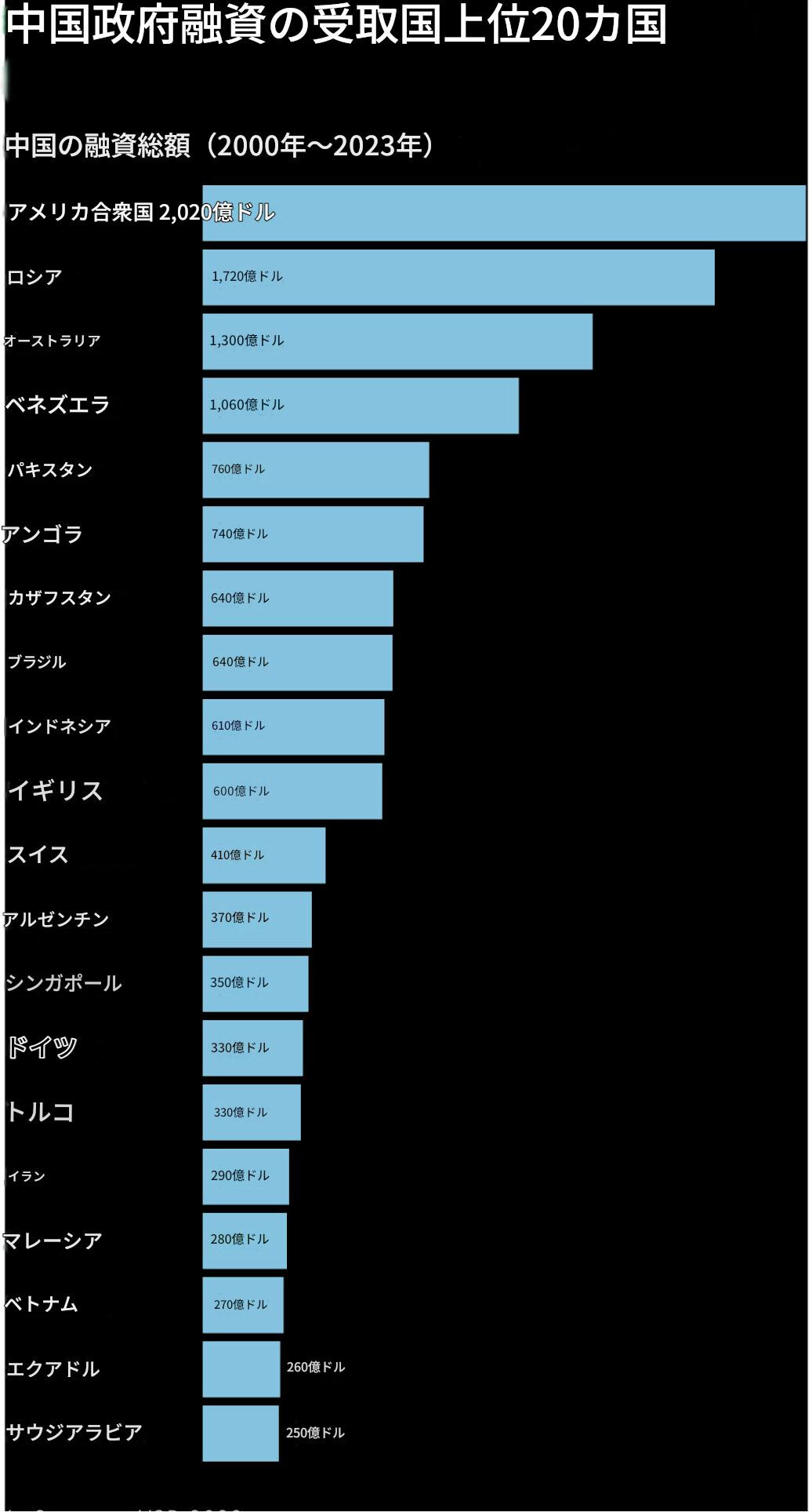 China is overtaking the West because the West was destroyed by these liars. It turns out China’s cross-border lending is “two-to-four times larger” than previously understood, according to Brad Parks, AidData’s executive director. China’s lending to 72 high-income countries—nearly $1 trillion—is on a scale comparable to the lending of the Belt and Road Initiative. The US is the top recipient of Chinese official lending.中国が西側を追い抜いているのは、西側がこれらの虚偽によって破壊されたからである。エイドデータのブラッド・パークス事務局長によれば、中国の越境融資は従来の認識よりも2倍~4倍も規模が大きいことが判明した。72の高所得国に対する中国の融資額は約1兆ドルに達しており、その規模は一帯一路構想による融資に匹敵するものである。中国政府による融資の最大の受取国は米国である。