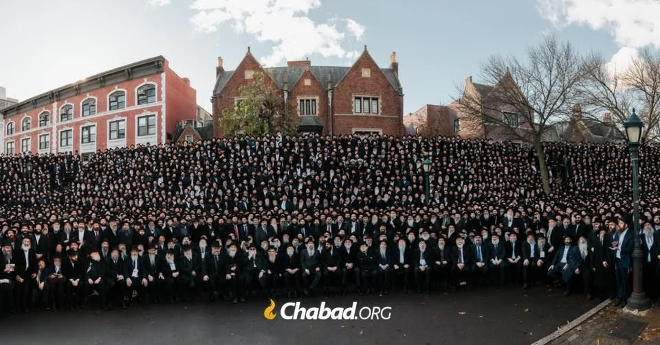 In Brooklyn, New York, thousands of Chabad Lubavitch rabbis (approximately 6,000) from around the world gathered in front of Chabad headquarters at 770 Crown Heights as part of the annual four-day international Kinus Shluchim conference for a photo opportunity on Sunday morning. These emissaries are part of a global network spanning all American states and over 100 countries. The message: global organization and coordinated authority.
