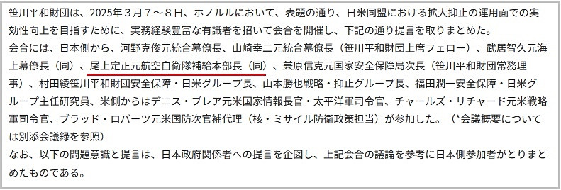 そして笹川平和財団は、今年6月に『日米同盟における拡大抑止の実効性向上を目指してー「核の傘」を本物にー』という政策提言をまとめているのです。