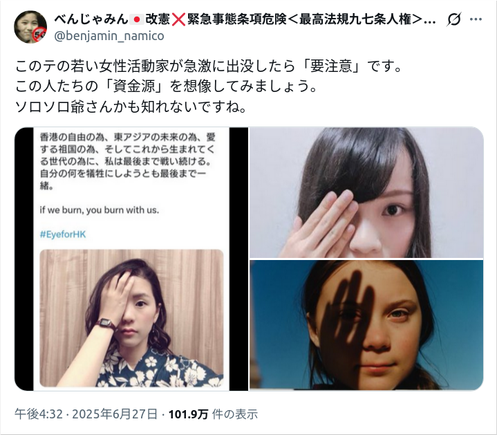 あ、片目を覆うヤツね。イルミナティのサインみたいな?