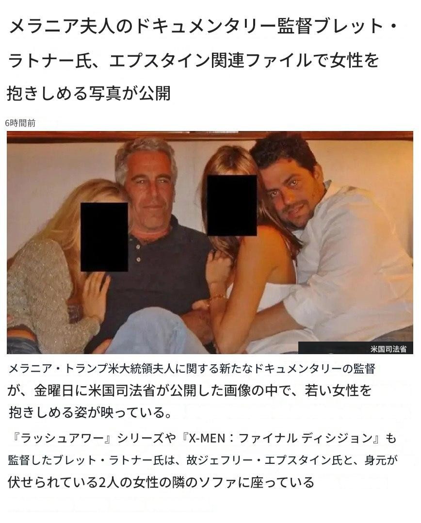Also, Brett Ratner, the director of the new documentary on US First Lady Melania Trump, has appeared embracing a young woman in images released by the US Department of Justice on Friday.また、メラニア・トランプ米大統領夫人を題材にした新作ドキュメンタリーの監督であるブレット・ラトナーが、金曜日に米司法省が公開した画像の中で若い女性を抱きしめている姿が確認された。